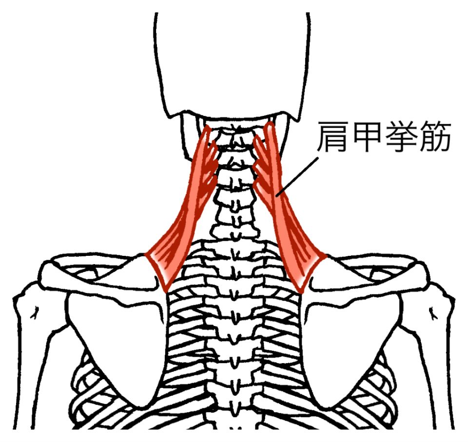 主に首、背中に広がる僧帽筋、肩甲挙筋、菱形筋といった筋肉が関係しています。